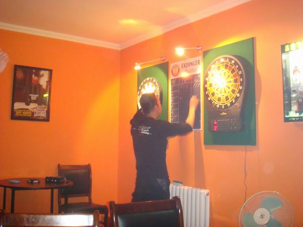 毗邻哈尔滨工业大学,均为原哈尔滨最著名的BOX酒吧原班人马,因场地较小,暂设镖道两条,一软(雅达利A5)一硬(puma),如有比赛软、硬可替换,环境十分幽雅,外国人非常多,老板是“海龟”经营理念超前,极热爱飞镖,自主发展飞镖爱好者20余人。镖道天天开放,排队打镖场面十分壮观,吧内天天播放各种球类比赛,人气超旺。出售unicorn\harrows\puma\nodor\501\万马\天天等各种飞镖器材/配件。