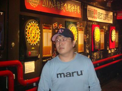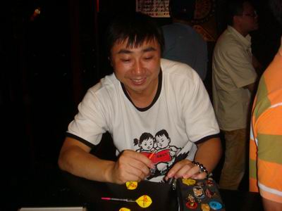 | 孙云志低调地整理自己的飞镖好参加一会的比赛 |