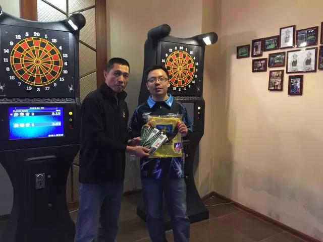 2015年10月8日星期四晚19点,黑龙江省飞镖协会会员积分赛在维多利亚台球会馆举行,10名飞镖爱好者参与了比赛。 大家刚刚度过了7天十一长假,带着或愉快或疲惫的心情再次来到飞镖馆。我们惊喜的看到了老镖友金炳均那张带着坏笑的脸。同样少见的是心事重重的王都彦和大大咧咧的孙万福。 今天肖哥的比赛打的相当给力,小组赛两个2:0拿下小组第一,进正组跟张宇打的激情澎湃,用一个高拆艰难扳平比分后决胜局501打的对手失去了再战的勇气,在本年度的比赛中首战胜了张宇。不过,半决赛的对手苏兴民更是怨气冲头的人物,自从CDL舟山站比赛后协会把一件选手服装作为积分赛冠军奖励开始,苏兴民就没赢过。越是想要越是拿不到。小伙伴们也是没见过这么喜欢CDL服装的人,都怀着坏坏的心思,赢了比赛也不拿走奖品,就放在那让小苏去抢,然后在后面偷偷的笑。 今天小苏终于如愿以偿了,开心的赢得了梦寐以求的CDL选手服。他小组赛没丢一局,淘汰赛战胜了激情澎湃的肖哥,决赛击败孙士俭,成功圆梦!小苏的这场胜利是一个励志的故事,他用自己的行动告诉人们:只要肯努力,真的能赢到奖品哦!